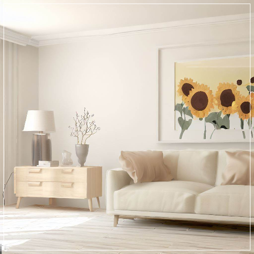 -. 채광이 잘 들어오는 거실 한 가운데에 해바라기 그림을 걸어두면 재물운이 높아진다. 해바라기의 노란색은 금과 연관되어 재물을 가져다준다고 한다. 꽃잎이 활짝 열려있는 해바라기 모양을 선택하는 것이 좋은데, 그 이유는 꽃잎이 활짝 열려 있으면 그 안에 가득한 씨앗이 재물을 의미하기 때문이다.